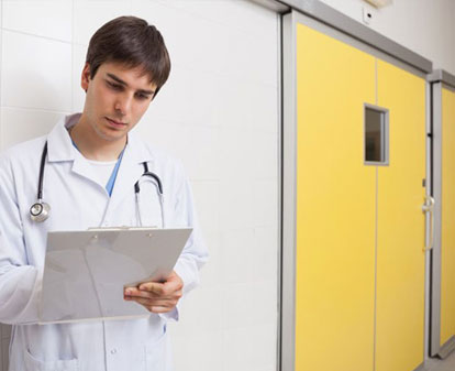 - Vision panel (if required) is fitted with lead glass of equivalent lead rating