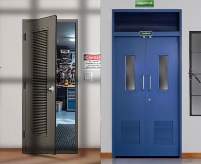 Vanguard Steel Louver Doors are designed to provide controlled airflow and ventilation while maintaining security, durability, and aesthetics. Ideal for mechanical rooms, electrical rooms, equipment enclosures, and industrial facilities, these doors ensure proper air circulation without compromising on safety or structural integrity. Available in multiple configurations, Vanguard louver doors are tailored to meet both performance and architectural requirements.