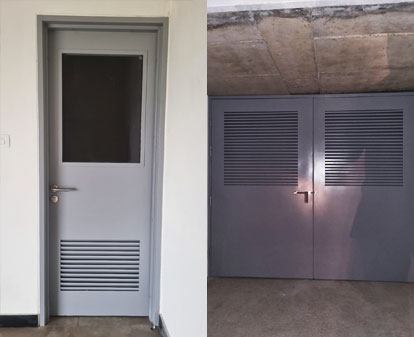 - Louvered panels integrated into the door shutter, with fixed blades for free airflow
